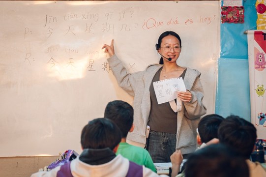 En el aula de la escuela municipal Dr. Ernesto Molinari Romero, estudiantes esperan atentos la llegada de la profesora Lorena Xie. En su ingreso la saludan con un “nǐ hǎo” que resuena en toda la clase. Ella acomoda el parlante, enciende el micrófono y comienza la lección.
